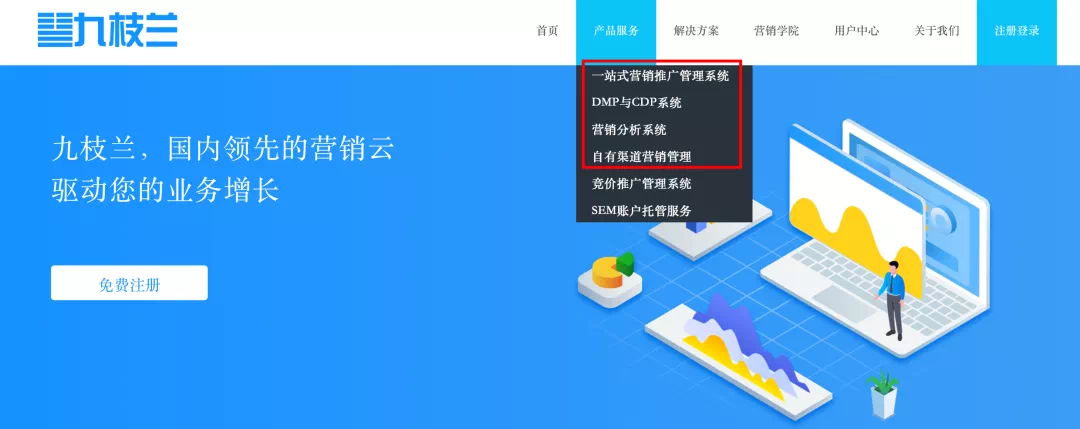 一枝兰系统现在主打4个模块:一站式营销推广管理系统、DMP与CDP系统、营销分析系统、自有渠道营销管理。一站式营销推广管理系统主要是用于广告投放管理,DMP与CDP系统主要是用于人群管理和客户运营,营销分析系统主要是用于广告效果监测和分析,自有渠道营销管理主要是用于追踪管理自有渠道线上线下所有活动的用户。4个系统各自的针对性较强,我主要使用的是一站式营销推广管理系统,在一枝兰官网注册即可使用。