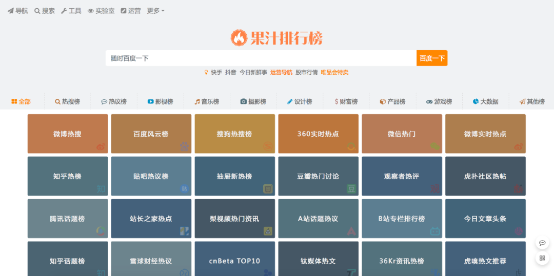 汇集各种排行榜的网站。