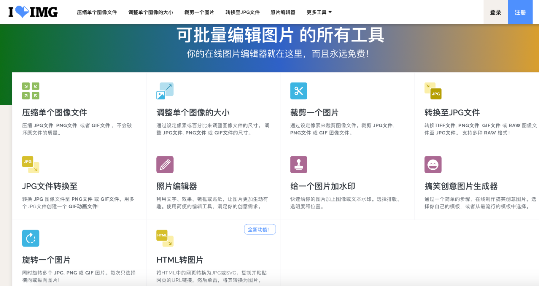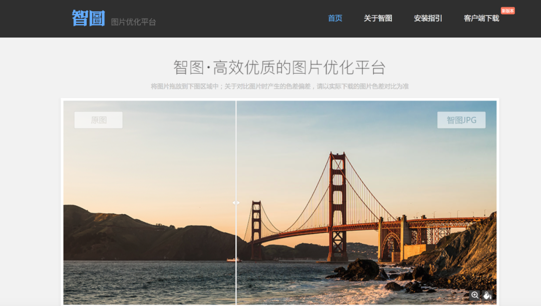 图片优化平台。这是一款图片无损压缩的小工具,属于腾讯ISUX前端团队。是专门用于图片压缩和图片格式转换的平台。上传图片之后,就可以进行图片智能压缩。可以得到两种格式,一种是JPG格式,还有一种体积更小的webP格式。
