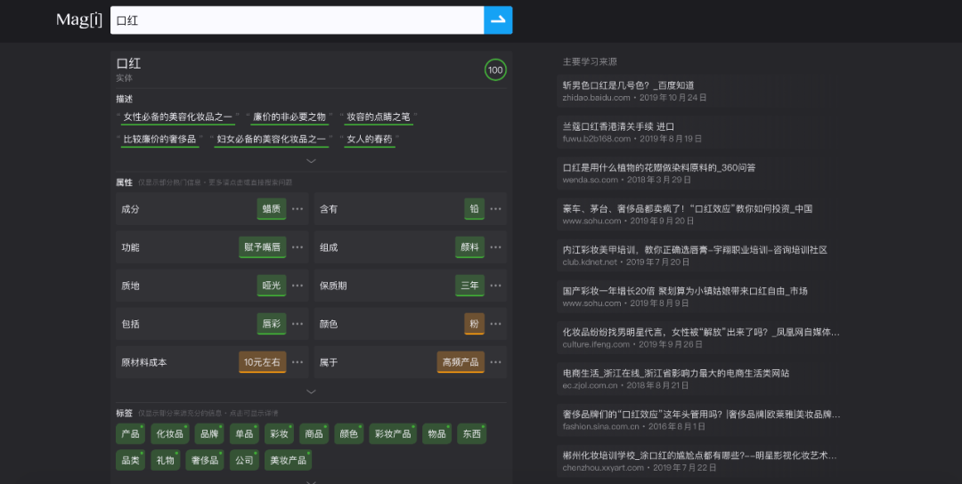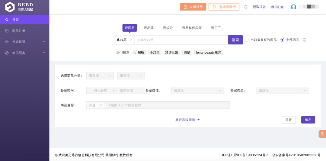 产品属性洞察:这个功能我经常在用,以化妆品为例,可以看到功效、原料、净含量、上市时间、产品类别等。
