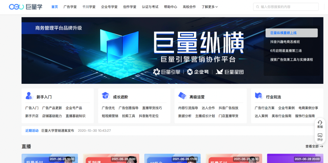 巨量大学是巨量引擎旗下一站式数字营销教育培训和认证平台。