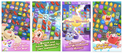 苹果更倾向于应用实际使用的截图,但原则上来讲你可以上传任意图像,包括概念图或特征图。通常,发布者通过在截图上添加关键要素或新功能的描述对图像进行设计。例如,糖果粉碎传奇(Candy Crush Saga)将更新覆盖在截图上。