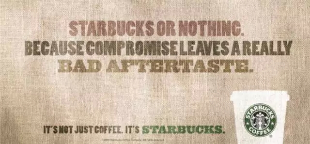 因此,星巴克携手广告公司BBDO,共同推出耗资数百万美元的广告宣传活动“Coffee value and values(咖啡价值和价值观)”,这是星巴克历史上最大型的营销活动。这次的宣传活动让星巴克咖啡再次成为行业明星。并且,广告文案中还出现了这样的广告词:“如果你的咖啡不完美,我们重做。如果你的咖啡还是不完美,那你肯定不是在星巴克,”除此以外还有,“当心廉价咖啡。一分价钱一分货。”