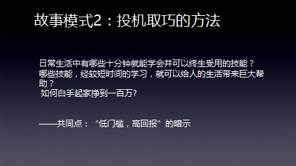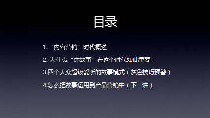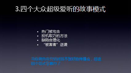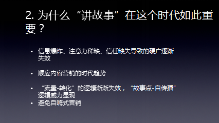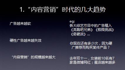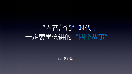 Posted in: 未分类 内容营销时代,一定要学会讲的四个故事 编者按:本文是吴寒迪在一枝兰的投稿文,并在社群做了精彩分享。 分享信息:9月26日晚8点 | 一枝兰网络营销大群 分享人:吴寒迪,对外经济贸易大学国际商学院硕士。先后任职奇虎360项目运营经理,智联协创营销总监,新浪微博运营主管; 内容重点:1.“内容营销”时代概述;2. 为什么“讲故事”在这个时代如此重要;3.四个大众超级爱听的故事模式(灰色技巧预警)点击下载完整PPT:http://pan.baidu.com/s/1dFFmkyX 关于作者:吴寒迪,虎嗅网、梅花网、广告门、艾瑞网等知名行业网站作者,口袋专家营销智囊团成员,第九课堂、实力派、职场充电宝特邀讲师,兼任多家创业公司和智库平台的营销顾问。 欢迎投稿,投稿邮箱:service@jiuzhilan.com。若转载本文请加上一枝兰微信ID:jiuzhilan或二维码。对于不署名者,一枝兰将保留追究的权利。