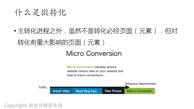 人人都懂转化漏斗,但不是所有人都关注微转化。但是你想指望一个转化漏斗不断提升转化率太困难了,而微转化却可以做到。转化漏斗解决的是转化过程中的大问题,但大问题总是有限的,这些问题搞定后,你还是需要对你的转化进行持续优化,这个时候必须要用到微转化。
