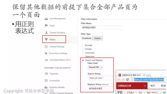 如果我们查看每一个商品页的表现,然后再把所有一个一个页面的数据加总起来作分析,就太麻烦了(根本无法实现分析)。这个时候,我们必须要合并同类项。