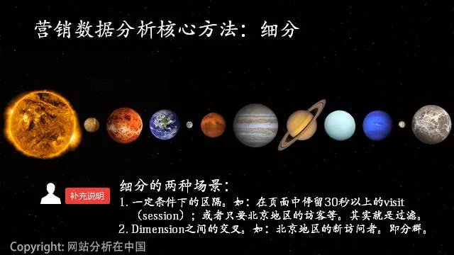 细分几乎帮助我们解决所有问题。比如,我们前面讲的构建转化漏斗,实际上就是把转化过程按照步骤进行细分。流量渠道的分析和评估也需要大量用到细分的方法。
