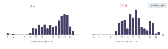 (1)周末的转化量明显集中在18点以后,工作日的转化量集中在下午13-15时;