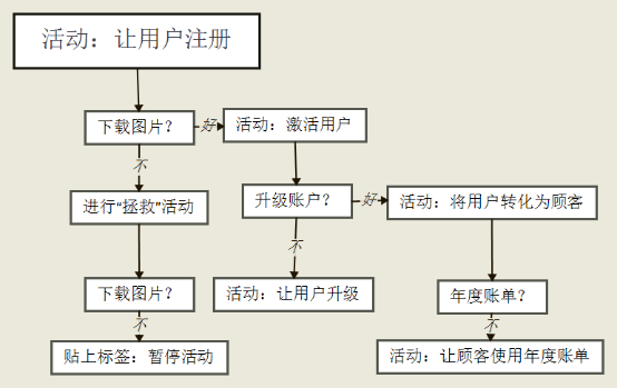 图表设计工具Snappa会根据订阅者在销售漏斗中的位置给他们发送定制化的email。以下是他们流程示意图的一个示例: