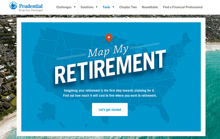 另一个出色的示例是Prudential保险公司的“工具”,它向人们展示了如果要在他们梦想的退休之地生活需要花费多少钱: