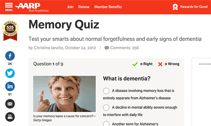 又或者这个AARP(全美退休人员协会)的测试就测试了你对老年痴呆的了解程度: