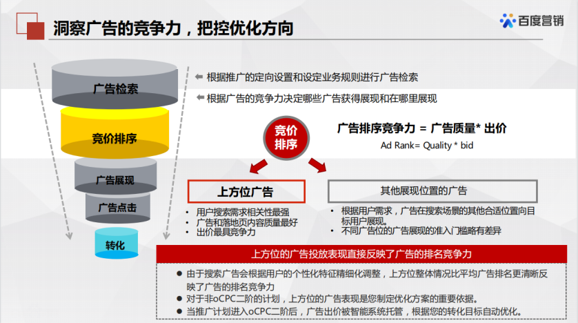 其中提出的三大优化维度:预估点击率,创意相关性,落地页体验。这三点对于我们这次讨论的内容都是息息相关:点击率对排名的影响,创意通配符置左优化排名等等。这些细节操作都能提升我们的广告竞争力,从而优化排名。