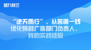 “逆天而行”,从苦逼一线优化师到广告部门负责人,我的实战经验 “ 小蒙酱是我们一枝兰的一位签约作者,是一个很热心的人,在我被约好的人放了鸽子后,临时抓她来... 2021年3月1日 Posted in: 优化师专栏 九枝兰2020年度热文回顾 春节假期就要过去,眼看大家都已经对自己的2020复盘,一枝兰也决定对2020一整年的文章进行一个总结回顾,为崭新的一年打下一个... 2021年2月24日 Posted in: CDP专栏, 优化师专栏, 营销技术专栏 职业访谈:探索的力量–90后优化师创业之路 今天的访谈对象有众多的标签,90后,优化师,女性,老板。 她叫林,从业7年,操盘过流水千万级&营收百万级的项目,目前经营一... 2021年2月23日 Posted in: 优化师专栏 当信息流优化师去发传单…… 01 优化师不就是这个发传单的小妹儿 早上9:15,优化师小A还没等地铁门全开,就疯了似的冲了出去,狂奔向公司……昨天晚上又熬... 2021年2月23日 Posted in: 优化师专栏 大搜和信息流常见13个问题解答,用好可以早下班~ 序言:前一段时间我应邀去了一家公司,和他们的推广分享一些优化思路以及实操细节,和大家分享一下大搜和信息流常见13个问题解... 2020年11月25日 Posted in: 优化师专栏 4点职场扎心真相: 凭什么他升职加薪, 却不是你? 常常遇到优化师问我关于能力与升职的问题。为何有些优化师能力很强,却只能是个主管。而能力不如他的都是经理甚至跳槽当总监... 2020年11月25日 Posted in: 优化师专栏 广告投放真有玄学一说?真相是数据分析让工作事半功倍 随着智能出价ocpc成为现在搜索竞价的主流出价,伴随而来的除了工作效率的提升,也不免有一些吐槽之声。 对ocpc的吐槽,往往有... 2020年11月18日 Posted in: 优化师专栏 职业访谈:95年甲方优化师的工作生活“真实版” 打电话之前,我担心着,95年的头条优化师跟我一个80后的阿姨会不会聊不到一起去,尤其看了20岁青年的公众号,文笔流畅深邃,业... 2020年11月18日 Posted in: 优化师专栏 看过来!详解:优化师面试的“潜”规则指导手册 马上就年底了,各个行业的优化师估计也开始“蠢蠢欲试”,感觉已经进入准备明年的跳槽换工作的季节。 那作为优化师,我们跳槽... 2020年11月10日 Posted in: 优化师专栏 行业投放分享:”学历教育”百度竞价可复制的优化方法论 学历教育行业是目前教育行业中一个较为细分的行业,其包括的业务体系很多,升高职、升大专、升本科、升研究生等。目前整个行... 2020年11月4日 Posted in: 优化师专栏 ‹ Previous«89101112»Next ›